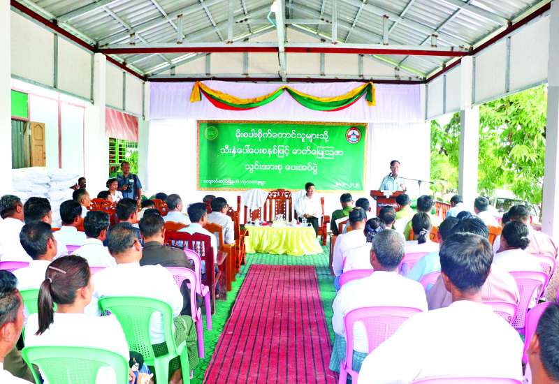 ကျောက်ဆည်မြို့နယ်အတွင်း နိုင်ငံ့စီးပွားမြှင့်တင်ရေးရန်ပုံငွေနှင့် အကျုံးမဝင်သော မိုးစပါးစိုက်တောင်သူများထံ သီးနှံပေါ်ပေးစနစ်ဖြင့် သွင်းအားစုဓာတ်မြေဩဇာများ ပေးအပ်ပွဲကို ယနေ့နံနက်ပိုင်းက မန္တလေးတိုင်းဒေသကြီး ကျောက်ဆည်မြို့ နယ် ကုလကျေးရွာ ဘက်စုံသုံးခန်းမ၌ ကျင်းပရာ သမဝါယမနှင့်ကျေးလက်ဖွံ့ဖြိုးရေးဝန်ကြီးဌာန ပြည်ထောင်စုဝန်ကြီး ဦးလှမိုး၊ မန္တလေးတိုင်းဒေသကြီး ဝန်ကြီးချုပ် ဦးမျိုးအောင်နှင့် တာဝန်ရှိသူများ တက်ရောက်ကြသည်။