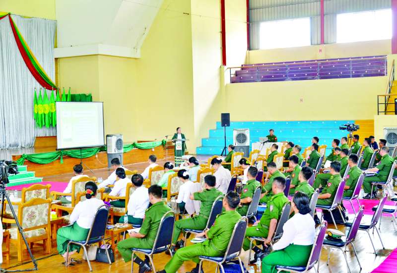 မြန်မာအီလက်ထရောနစ်မဲပေးစက်(MEVM)ဆိုင်ရာ အသိပညာပေးခြင်းနှင် လက်တွေ့စမ်းသပ်မဲပေးခြင်းကို ယနေ့မွန်းလွဲပိုင်းတွင် အနောက်တောင်တိုင်းစစ်ဌာနချုပ် တပ်နယ်အားကစားခန်းမ၌ပြုလုပ်ရာ တိုင်းမှူးဗိုလ်မှူးချုပ် စိုးကျော်ထက်နှင့် အဖွဲ့ဝင်များ၊ အရာရှိ၊ စစ်သည်၊ မိသားစုဝင်များ တက်ရောက်ကြသည်။