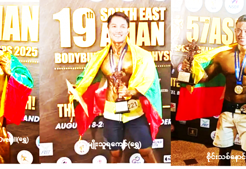 ထိုင်းနိုင်ငံ ဗန်ကောက်မြို့၌ သြဂုတ် ၁၈ ရက်မှ ၂၅ ရက်အထိ ကျင်းပလျက်ရှိသည့် (၁၉)ကြိမ်မြောက် အရှေ့တောင်အာရှနှင့် (၅၇) ကြိမ်မြောက် အာရှကာယဗလနှင့် ကာယကြံ့ခိုင်အားကစားပြိုင်ပွဲတွင်မြန်မာ့လက်ရွေးစင် ကာယဗလအားကစားသမားများက Champion of Champion Overall Champion ဆုဖလားနှင့်ရွှေလေးခု၊ ငွေနှစ်ခု၊ ကြေးသုံးခုဆွတ်ခူးရရှိထားကြောင်း သိရသည်။