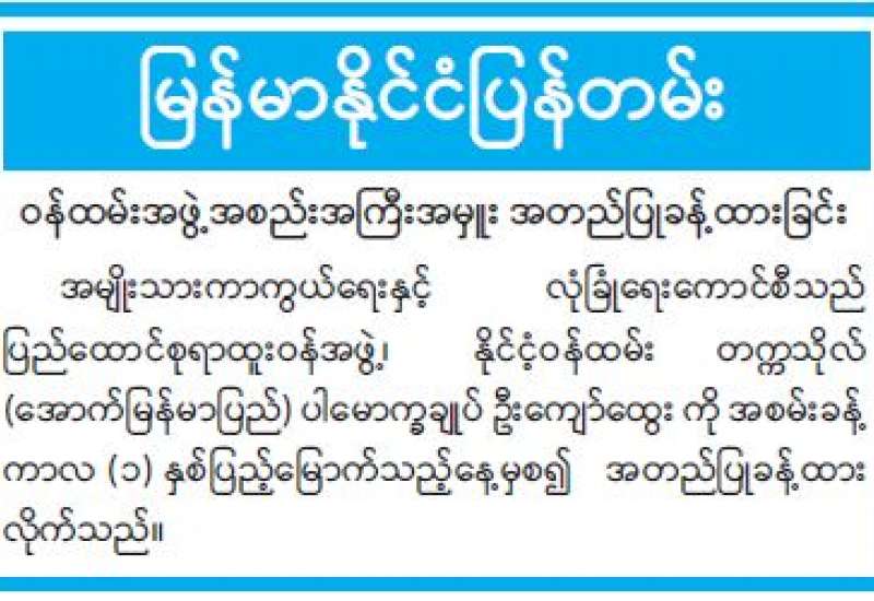 ဝန်ထမ်းအဖွဲ့အစည်းအကြီးအမှူး အတည်ပြုခန့်ထားခြင်း