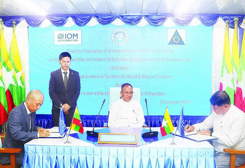 အလုပ်သမားဝန်ကြီးဌာန ပြည်ထောင်စုဝန်ကြီး ဦးအောင်ကျော်ဟိုးသည် အပြည်ပြည်ဆိုင်ရာ ရွှေ့ပြောင်းသွားလာရေးအဖွဲ့ (IOM) မှ အာရှနှင့် ပစိဖိတ်ဒေသဆိုင်ရာ ညွှန်ကြားရေးမှူး Mr. Iori KATO အား ယနေ့နံနက်ပိုင်းတွင် နေပြည်တော်ရှိ အလုပ်သမားဝန်ကြီးဌာန ယာယီရုံးအဆောက်အအုံ ဧည့်ခန်းမ၌ လက်ခံတွေ့ဆုံသည်။