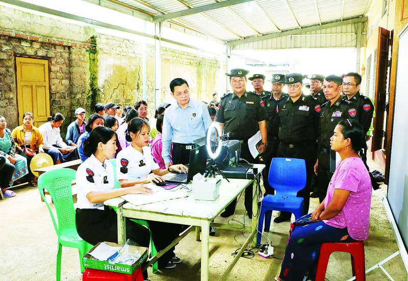 လူဝင်မှုကြီးကြပ်ရေးနှင့်ပြည်သူ့အင်အားဝန်ကြီးဌာန ပြည်ထောင်စုဝန်ကြီး ဦးမြင့်ကြိုင်သည် ယနေ့နံနက်ပိုင်းက ရှမ်းပြည်နယ် (မြောက်ပိုင်း) နောင်ချိုမြို့သို့ သွားရောက်၍ လူဝင်မှုကြီးကြပ်ရေးနှင့်ပြည်သူ့အင်အားဝန်ကြီးဌာန နောင်ချိုမြို့နယ်ဦးစီးမှူးရုံးမှ ဝန်ထမ်းများက နောင်ချိုမြို့ အမှတ် (၁) အခြေခံပညာအထက်တန်းကျောင်း၌ ကျောင်းသား ကျောင်းသူများအား ပန်းခင်းစီမံချက်အဆင့် (၃) ဖြင့် နိုင်ငံသားစိစစ်ရေးကတ်ထုတ်ပေးခြင်းလုပ်ငန်းကို One Stop Service ဖြင့် စိစစ်ထုတ်ပေးနေမှုကိုလည်းကောင်း၊ နိုင်ငံသားကတ်ရရှိပြီးသူများအား Biographic/Biometric ကောက်ယူကာ Unique ID နံပါတ်ထုတ်ပေးခြင်းလုပ်ငန်း ဆောင်ရွက်ပေးနေမှုကိုလည်းကောင်း၊ စာသင်ခန်းများအတွင်း ကျောင်းသား ကျောင်းသူများ အေးချမ်းစွာပညာသင်ကြားနေမှုကိုလည်းကောင်း လှည့်လည်ကြည့်ရှုအားပေးသည်။