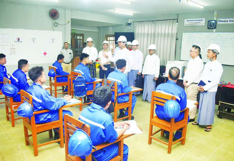 မြန်မာနိုင်ငံလုပ်သားများ ကျွမ်းကျင်မှု စံသတ်မှတ်ပြဋ္ဌာန်းရေးအဖွဲ့(NSSA)ဥက္ကဋ္ဌ၊ အလုပ်သမား ဝန်ကြီးဌာန ဒုတိယဝန်ကြီး ဦးဝင်းရှိန်သည် တာဝန်ရှိသူများနှင့်အတူ ယနေ့နံနက်ပိုင်းက ရန်ကုန်တိုင်းဒေသကြီး မရမ်းကုန်းမြို့နယ်ရှိ Kabar Training သင်တန်းကျောင်း၌ ကျောက်ပုံးရိုက် သင်တန်းဖွင့်လှစ်နေမှုကို ကြည့်ရှုအားပေးသည်။