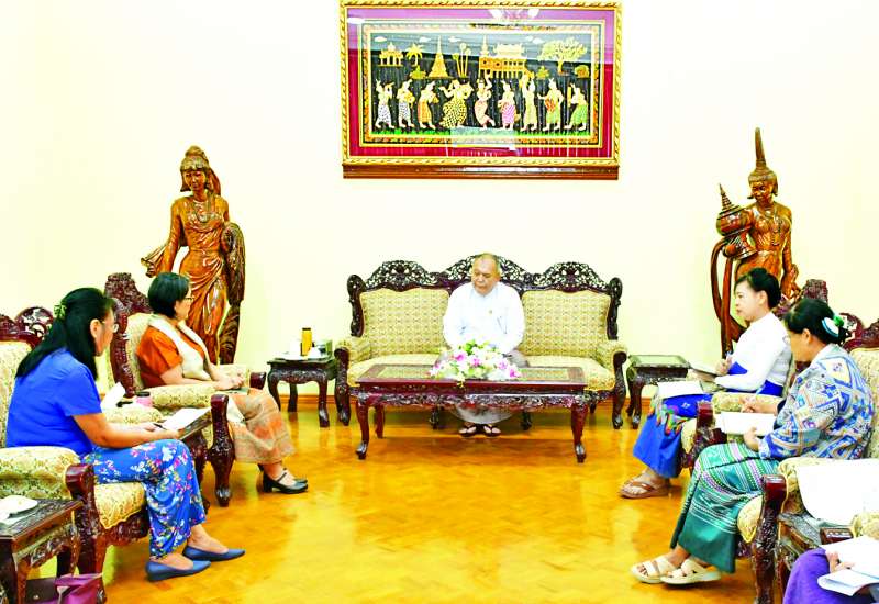 လူဝင်မှုကြီးကြပ်ရေးနှင့်ပြည်သူ့အင်အားဝန်ကြီးဌာန ပြည်ထောင်စုဝန်ကြီး ဦးမြင့်ကြိုင်သည် ကုလသမဂ္ဂဒုက္ခသည်များဆိုင်ရာ မဟာမင်းကြီးရုံး(UNHCR) မြန်မာနိုင်ငံဆိုင်ရာ ဌာနေကိုယ်စားလှယ် Ms. Noriko Takagi နှင့်အဖွဲ့အား ယနေ့မွန်းလွဲပိုင်းတွင် နေပြည်တော်ရှိအဆိုပါ ဝန်ကြီးဌာန ပြည်ထောင်စုဝန်ကြီး၏ ဧည့်ခန်းမ၌ လက်ခံတွေ့ဆုံသည်။