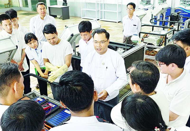 EV (Electric Vehicle) ပြုပြင်ထိန်းသိမ်းမှုသင်တန်း (၂/၂၀၂၅) ဖွင့်ပွဲအခမ်းအနားကို ယနေ့နံနက်ပိုင်းတွင် အစိုးရစက်မှုလက်မှုသိပ္ပံ(အင်းစိန်)၌ ကျင်းပသည်။