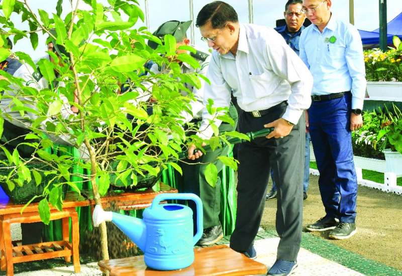 ပြည်ထောင်စုနယ်မြေနေပြည်တော် ၂၀၂၅ ခုနှစ် ဒုတိယအကြိမ် မိုးရာသီသစ်ပင်စိုက်ပျိုးပွဲအခမ်းအနားကို ယနေ့နံနက်ပိုင်းတွင် ပြည်ထောင်စုနယ်မြေနေပြည်တော် ဒက္ခိဏသီရိမြို့နယ် ရန်အောင်မြင်ကြိုးဝိုင်း၌ကျင်းပရာ နိုင်ငံတော်စီမံအုပ်ချုပ်ရေးကောင်စီဥက္ကဋ္ဌ နိုင်ငံတော်ဝန်ကြီးချုပ် ဗိုလ်ချုပ်မှူးကြီး မင်းအောင်လှိုင်တက်ရောက်၍ ခရေပျိုးပင်ကို ဦးဆောင်စိုက်ပျိုးပေးသည်။