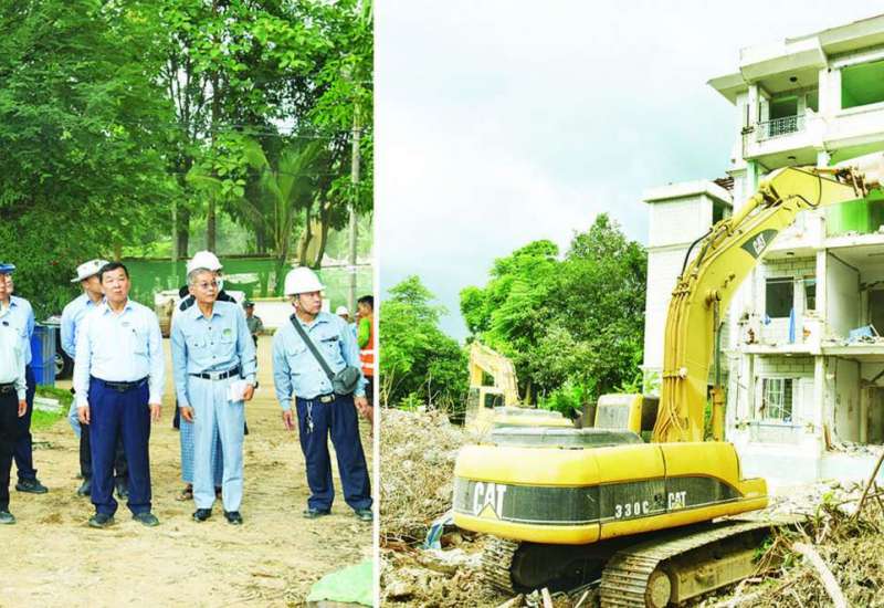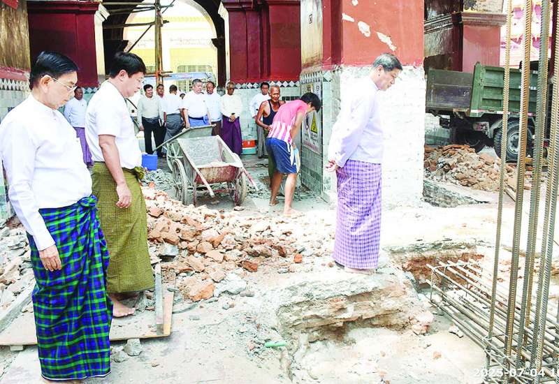 အဆောက်အဦများ ပြန်လည်ပြုပြင်အသုံးပြုရေးနှင့် အသစ်တည်ဆောက်ရေးကြီးကြပ်မှုကော်မတီဥက္ကဋ္ဌ နိုင်ငံတော်စီမံအုပ်ချုပ်ရေးကောင်စီအဖွဲ့ဝင် ဒုတိယဝန်ကြီးချုပ်နှင့် ကာကွယ်ရေးဝန်ကြီးဌာန ပြည်ထောင်စုဝန်ကြီး ဗိုလ်ချုပ်ကြီး မောင်မောင်အေးသည် ပြည်ထောင်စုဝန်ကြီး ဦးအောင်ကျော်ဟိုး၊ ဦးမျိုးသန့်၊ နေပြည်တော်ကောင်စီဥက္ကဋ္ဌ ဦးသန်းထွန်းဦးနှင့်အတူ ယနေ့မွန်းလွဲပိုင်းတွင် ငလျင်ဒဏ်ကြောင့် ထိခိုက်ပျက်စီးခဲ့သည့် နိုင်ငံတော်ပိုင်ရုံးအဆောက်အအုံများနှင့် နိုင်ငံတော်ပိုင်ဝန်ထမ်းအိမ်ရာများသို့သွားရောက်၍ အဆောက်အအုံများ ဖြိုချဖျက်သိမ်းခြင်းလုပ်ငန်းများ ဆောင်ရွက်မှုအခြေအနေများကို ကြည့်ရှုစစ်ဆေးသည်။