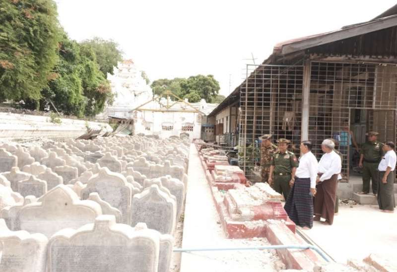 မန္တလေးတိုင်းဒေသကြီးဝန်ကြီးချုပ် ဦးမျိုးအောင်သည် တိုင်းဒေသကြီးဝန်ကြီးများနှင့်အတူ ယနေ့ နံနက်ပိုင်းက မဟာမုနိဘုရားကြီး ဂန္ဓကုဋိကျောင်း တော်ကြီးနှင့် သာသနိကအဆောက်အအုံများ ပြန်လည် ပြုပြင်တည်ဆောက်နေမှုများ၊ မြစ်ငယ်-ထုံးဘို တိုးဂိတ်မန္တလေးမြို့အဝင်လမ်းမကြီးအား ဆေးကြောသန့်ရှင်းခြင်းဆောင်ရွက်နေမှုများကို လိုက်လံကြည့်ရှု စစ်ဆေးသည်။