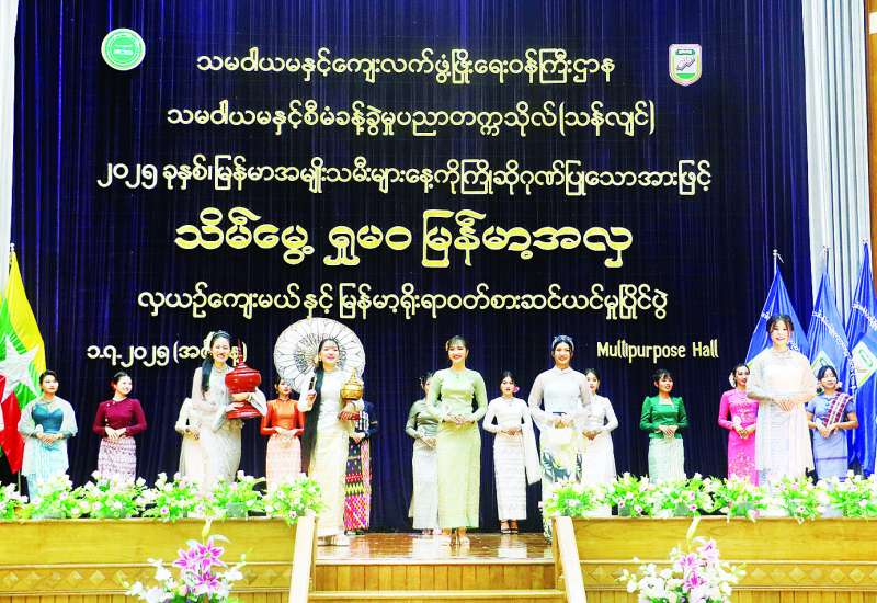 သမဝါယမနှင့်စီမံခန့်ခွဲမှုပညာတက္ကသိုလ် (သန်လျင်) တွင် မြန်မာအမျိုးသမီးများနေ့ကို ဂုဏ်ပြုသောအားဖြင့် “သိမ်မွေ့ရှုမဝမြန်မာ့အလှ” လှယဉ်ကျေးမယ်နှင့် မြန်မာ့ရိုးရာ ဝတ်စားဆင်ယင်မှုပြိုင်ပွဲကို ယနေ့နံနက် ၉ နာရီခွဲက ဘက်စုံသုံးခန်းမ၌ ကျင်းပရာ ပါမောက္ခချုပ် ဒေါက်တာရီရီဝင်းက အမှာစကားပြောကြားသည်။