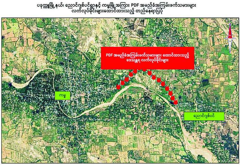 PDF အမည်ခံအကြမ်းဖက်သမားများသည် အများပြည်သူများ အထိတ်တလန့်ဖြစ်စေရန်၊ အေးချမ်းစွာ နေထိုင်လုပ်ကိုင်စားသောက်နေမှုများကို နှောင့်ယှက်ရန်၊ လမ်းပန်းဆက်သွယ်ရေးနှင့် ကုန်စည်စီးဆင်းမှုများ အခက်အခဲများ ဖြစ်ပေါ်စေရန်နှင့် အကြောက်တရားများ ပိုမိုဖြစ်ပေါ်စေရန် ရည်ရွယ်၍ မြို့၊ ရွာ၊ ရပ်ကွက်၊ ကျေးရွာများ၊ လမ်း၊ တံတားများ၌ မိုင်းထောင်ဖောက်ခွဲခြင်းများကို လုပ်ဆောင်လျက်ရှိရာ ဇွန် ၁ ရက်တွင် မကွေးတိုင်းဒေသကြီး ပခုက္ကူမြို့မှ ပေါက်မြို့သို့သွားသည့် အများ ပြည်သူသုံးလမ်းများပေါ်၌ PDF အမည်ခံအကြမ်းဖက်သမားများ ထောင်ထားသည့် ဒေသန္တရလက်လုပ်မိုင်းများအား တွေ့ရှိသိမ်းဆည်းရမိခဲ့ကြောင်း သတင်းထုတ်ပြန်ထားပြီးဖြစ်သည်။