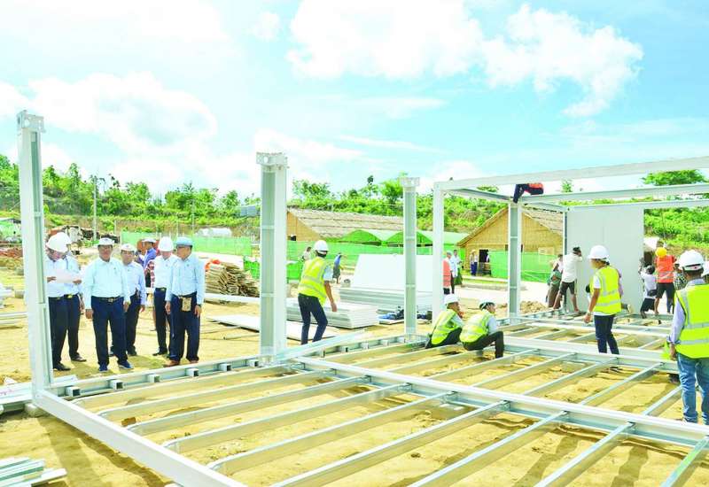 လျှပ်စစ်စွမ်းအားဝန်ကြီးဌာန ပြည်ထောင်စုဝန်ကြီး ဦးဉာဏ်ထွန်းသည် ဒုတိယဝန်ကြီး ဦးအေးကျော်နှင့်အတူ ယနေ့နံနက်ပိုင်းတွင် ဥတ္တရသီရိမြို့နယ်ရှိ နေပြည်တော်ဗဟိုသင်တန်းကျောင်းဝင်းအတွင်း ဝန်ကြီးဌာနမှ ငလျင်ဘေးသင့်ဝန်ထမ်းများနှင့် ဝန်ထမ်းမိသားစုများ ယာယီပြောင်းရွှေ့နေထိုင်နိုင်ရန်အတွက် Container House များ တည်ဆောက်နိုင်ရန်ပစ္စည်းများ ရောက်ရှိမှု၊  တပ်ဆင်တည်ဆောက်နေမှုအခြေအနေကို သွားရောက်ကြည့်ရှုစစ်ဆေးသည်။