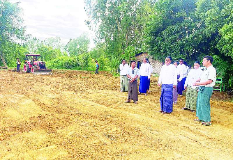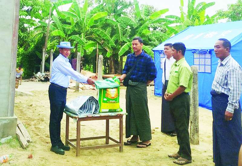 သမဝါယမနှင့်ကျေးလက်ဖွံ့ဖြိုးရေးဝန်ကြီးဌာန ပြည်ထောင်စုဝန်ကြီး ဦးလှမိုးသည် ဒုတိယဝန်ကြီးဦးမြင့်စိုးနှင့်အတူ ယနေ့ညနေပိုင်းက ငလျင်ဒဏ်သင့်ခဲ့သည့် ဝန်ထမ်းများအတွက် တည်ဆောက်ပြီးစီးခဲ့သည့် ယာယီဘာရှာလိုင်းခန်းများ၌ ပြောင်းရွှေ့နေထိုင်မှုများကို ကြည့်ရှုစစ်ဆေးသည်။