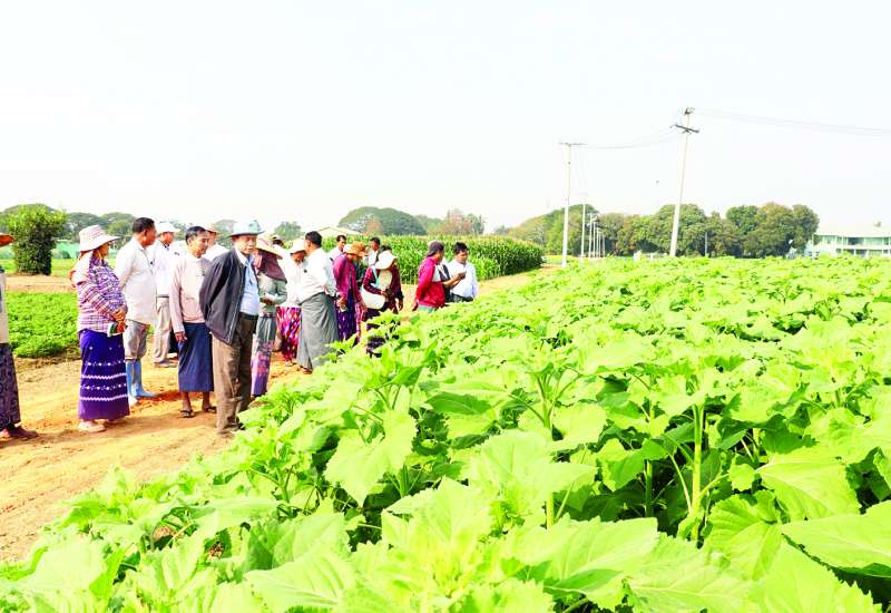 စိုက်ပျိုးရေးဦးစီးဌာန မျိုးစေ့ဌာနခွဲနှင့် နေပြည်တော်ပုဗ္ဗသီရိမြို့နယ် ဘဲကုန်းကျေးရွာ ဒေသခံတောင်သူများ ပူး‌ပေါင်းဆောင်ရွက်ထားသည့် ပေါင်ကြီးတင်စနစ်အပါအဝင် စပ်မျိုးပြောင်းဖူးမျိုး ၁၄ မျိုးအား အချင်းချင်းမျိုးဆက်ကူးစပ်ခြင်း ဆောင်ရွက်၍ ပြောင်းဖူးမျိုးကွဲစု(Composite) ကွန်ပိုးစစ်မျိုးများရရှိရန် မွေးမြူခြင်း၊ စိုက်ခင်း၊ နေကြာဆင်းရွှေကြာ(၂) ရွေးချယ်မျိုးကူးစိုက်ခင်း၊ ပန်းနှမ်း၊ ပဲယဉ်းနီ၊ ပဲပုပ်ရေဆင်း(၁၅) ပေါင်ဖော်ကြဲပက်စိုက်နည်းစနစ်စိုက်ခင်းများသို့ ယမန်နေ့နံနက်ပိုင်းက စိုက်ပျိုးရေး၊ မွေးမြူရေးနှင့် ဆည်မြောင်းဝန်ကြီးဌာန ဒုတိယဝန်ကြီး ဒေါက်တာတင်ထွဋ် ကွင်းဆင်းကြည့်ရှုစစ်ဆေးသည်။