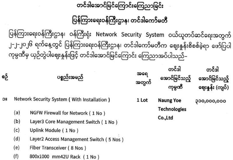 (၇၉)နှစ်မြောက် ပြည်ထောင်စုနေ့ကို ကြိုဆိုဂုဏ်ပြုသောအားဖြင့် ပြည်ထောင်စုအဆင့် MSME ထုတ်ကုန်ပြပွဲနှင့် ဈေးရောင်းပွဲတော် (နေပြည်တော်) ကို နေပြည်တော် ပြည်သူ့ရင်ပြင်၌ ဖေဖော်ဝါရီ ၈ ရက်မှ ၁၃ ရက်အထိ စည်ကားသိုက်မြိုက်စွာ ကျင်းပသွားမည်ဖြစ်သည်၊၊