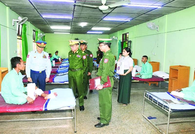ဧရာဝတီတိုင်းဒေသကြီး ပုသိမ်မြို့ရှိ နယ်မြေခံဆေးတပ်ရင်း၌ တက်ရောက်ဆေးကုသမှုခံယူလျက်ရှိသော အရာရှိ၊ စစ်သည်၊ မိသားစုဝင်များ၊ မြန်မာနိုင်ငံရဲတပ်ဖွဲ့ဝင်များနှင့် ဒေသခံပြည်သူများအား ယနေ့မွန်းလွဲပိုင်းတွင် အနောက်တောင်တိုင်းစစ်ဌာနချုပ် တိုင်းမှူး ဗိုလ်ချုပ် စိုးကျော်ထက်နှင့် အဖွဲ့ဝင်များက သွားရောက်ကြည့်ရှုအားပေးပြီး တစ်ဦးချင်း၏ ရောဂါဖြစ်ပွားမှု၊ ဆေးဝါးကုသပေးထားမှုနှင့် ကျန်းမာရေးတိုးတက်ကောင်းမွန်မှုအခြေအနေများကို ရင်းရင်းနှီးနှီး မေးမြန်းအားပေးစကားပြောကြားကာ ဆေးရုံတက်လူနာများအတွက် ချီးမြှင့်ငွေများနှင့် စားသောက်ဖွယ်ရာများ ပေးအပ်ခဲ့ကြောင်း သတင်းရရှိသည်။