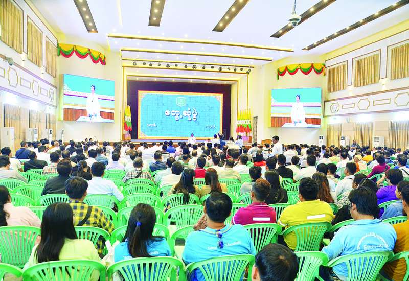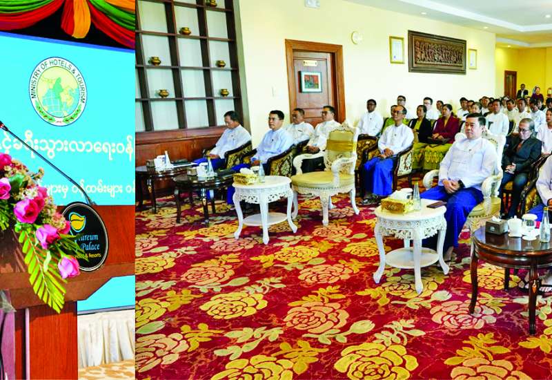 ပြည်ထောင်စုနယ်မြေ နေပြည်တော်အတွင်းရှိ ဟိုတယ်များမှ မန်နေဂျာ/ ကြီးကြပ်ရေးမှူးအဆင့်ရှိ ဝန်ထမ်းများအတွက် ခေါင်းဆောင်မှုနှင့် ဝန်ဆောင်မှုစွမ်းရည်မြှင့်တင်ရေးသင်တန်းဖွင့်ပွဲကို ယနေ့နံနက်ပိုင်းတွင် နေပြည်တော် Aureum Palace ဟိုတယ်၌ ကျင်းပသည်။
