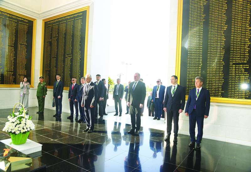 အမျိုးသားလုံခြုံရေးဆိုင်ရာ အကြံပေးပုဂ္ဂိုလ်၊ နိုင်ငံတော်သမ္မတရုံးဝန်ကြီးဌာန (၁) ပြည်ထောင်စုဝန်ကြီး ဦးတင်အောင်စန်း၏ ဖိတ်ကြားချက်အရ မြန်မာနိုင်ငံသို့ရောက်ရှိနေသော ရုရှားဖက်ဒရေးရှင်းနိုင်ငံ လုံခြုံရေးကောင်စီအတွင်းရေးမှူး H.E.Mr. Sergey SHOIGU ဦးဆောင်သော ကိုယ်စားလှယ်အဖွဲ့သည် ယနေ့နံနက်ပိုင်းတွင် သူရဲကောင်းဗိမာန် (နေပြည်တော်) သို့သွားရောက်၍ ဂုဏ်ပြုပန်းခြင်းချပြီး သူရဲကောင်းစစ်သည်များအား အလေးပြုကြသည်။
