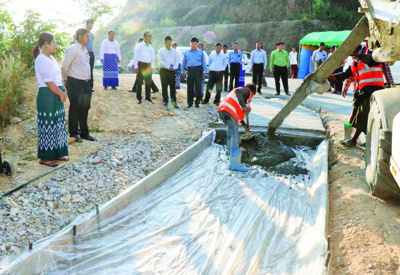 ချောင်းဆုံမြို့နယ် ရွာလွတ် - ကတောင်စိန်ကျေးရွာချင်းဆက် တောင်ဖြတ်လမ်း၏ အကွေ့များသောနေရာများတွင် ကွန်ကရစ်လမ်းပခုံးခင်းခြင်းလုပ်ငန်းဆောင်ရွက်နေမှုကို ယနေ့နံနက်ပိုင်းက သမဝါယမနှင့်ကျေးလက်ဖွံ့ဖြိုးရေးဝန်ကြီးဌာန ဒုတိယဝန်ကြီး ဦးသိုက်စိုးသည် မွန်ပြည်နယ် လမ်းပန်းဆက်သွယ်ရေးဝန်ကြီး ဦးတင်စန်းနိုင်၊ တာဝန်ရှိသူများနှင့်အတူ သွားရောက်ကြည့်ရှုစစ်ဆေးသည်။