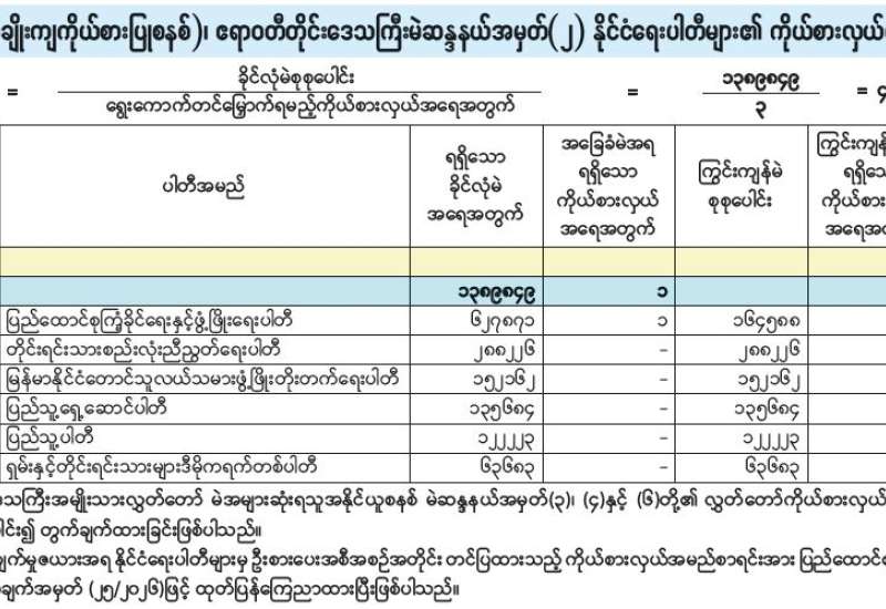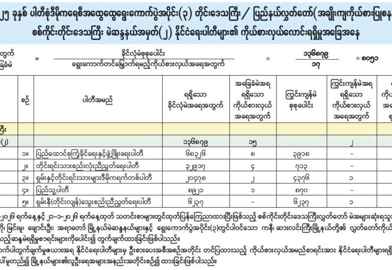အမျိုးသားလွှတ်တော် (အချိုးကျကိုယ်စားပြုစနစ်)၊ ဧရာဝတီတိုင်းဒေသကြီးမဲဆန္ဒနယ်အမှတ် (၂) နိုင်ငံရေးပါတီများ၏ ကိုယ်စားလှယ်လောင်းရရှိမှုအခြေအနေ