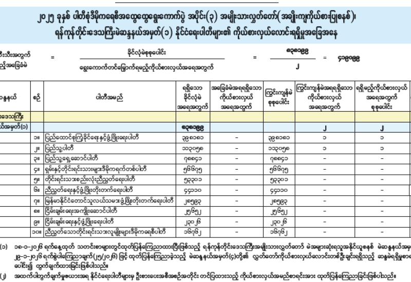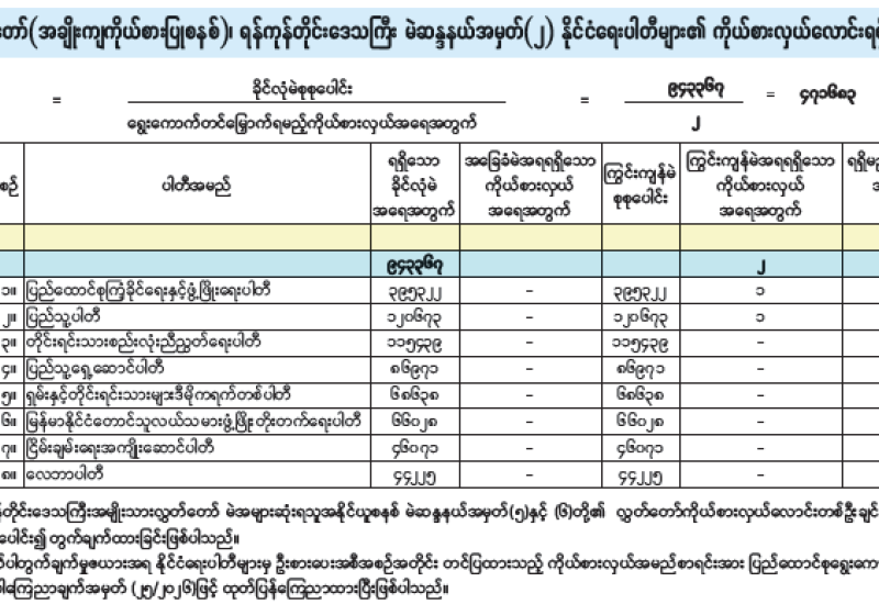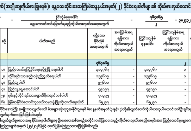 ရန်ကုန်မြို့နှင့် မန္တလေးမြို့အတွက် ရည်ညွှန်းလက်ကားဈေးနှုန်းများနှင့် ပြည်ထောင်စုနယ်မြေ နေပြည်တော်၊ တိုင်းဒေသကြီး/ပြည်နယ် မြို့တော်များအတွက် ရည်ညွှန်းလက်လီဈေးနှုန်းများ