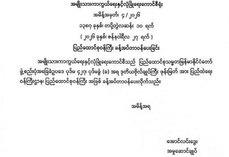ပြည်ထောင်စုဝန်ကြီး ခန့်အပ်တာဝန်ပေးခြင်း