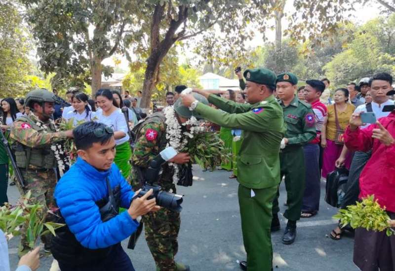 ပြည်သူများအား နှိပ်စက်ညှင်းပန်း၍ ဒေသဖွံ့ဖြိုးတိုးတက်မှုကို ချွတ်ခြုံကျစေသည့် အကြမ်းဖက်လုပ်ရပ်များကို လုပ်ဆောင်ခဲ့သော လက်နက်ကိုင်အကြမ်းဖက်အဖွဲ့များနှင့် PDF အမည်ခံအကြမ်းဖက်အဖွဲ့များအား ရွပ်ရွပ်ချွံချွံတိုက်ပွဲဝင်၍ အောင်ပွဲအလီလီရယူနိုင်ခဲ့သော ရှေ့တန်းပြန်နိုင်ငံ့သားကောင်း တပ်မတော်သားများအား ဂုဏ်ပြုကြိုဆိုခြင်းကို ယနေ့နံနက်ပိုင်းတွင် မကွေးတိုင်းဒေသကြီး၊ မင်းဘူးမြို့နယ်ရှိ နယ်မြေခံတပ်ရင်း၌ ပြုလုပ်ရာ အလယ်ပိုင်းတိုင်းစစ်ဌာနချုပ် ဒုတိယတိုင်းမှူး ဗိုလ်မှူးချုပ် လင်းနိုင်စိုးနှင့် တာဝန်ရှိသူများ၊ တိုင်းဒေသကြီးအစိုးရအဖွဲ့ဝင် ဝန်ကြီးများ၊ ဌာနဆိုင်ရာတာဝန်ရှိသူများ၊ ဆရာ/ ဆရာမများ၊ ကျောင်းသား/ ကျောင်းသူများနှင့် ဒေသခံပြည်သူများ တက်ရောက်ကြသည်။
