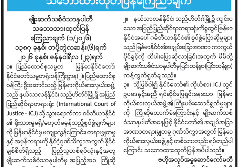 မြန်မာနိုင်ငံအစိုးရအနေဖြင့် နိုင်ငံတကာနှင့် တစ်ကမ္ဘာလုံးကို အန္တရာယ်ပေးနေသည့် online လိမ်လည်မှုများ၊ online လောင်းကစားမှုများ တိုက်ဖျက်ရေးလုပ်ငန်းစဉ်များကို အမျိုးသားရေးတာဝန်တစ်ရပ်အနေဖြင့် အလေးထားတိုက်ဖျက်ဆောင်ရွက်လျက်ရှိပြီး Online Scam Center လုပ်ငန်းများတွင် ပါဝင်ပတ်သက်နေသူများနှင့် နောက်ကွယ်မှ ကြိုးကိုင်သော နိုင်ငံခြားသားများကို ဖော်ထုတ်ဖမ်းဆီးပြီး ထိထိရောက်ရောက် ပြင်းပြင်းထန်ထန်အရေးယူနိုင်ရေး အိမ်နီးချင်းနှင့် ဒေသတွင်းနိုင်ငံများ၊ နိုင်ငံတကာအဖွဲ့အစည်းများနှင့် တက်ကြွစွာ ပူးပေါင်းဆောင်ရွက်လျက်ရှိသည့်အပြင် အကြောင်းအမျိုးမျိုးကြောင့် မြန်မာနိုင်ငံအတွင်းသို့ ရောက်ရှိနေသည့် နိုင်ငံခြားသားများကိုလည်း လူသားချင်းစာနာထောက်ထားမှုနှင့် နိုင်ငံအချင်းချင်းချစ်ကြည်ရင်းနှီးမှုတို့ကို ရှေးရှု၍ တရားဥပဒေနှင့်အညီ စစ်ဆေးကာ ပါဝင်ပတ်သက်သူများကို သက်ဆိုင်ရာနိုင်ငံများသို့ ပြန်လည်လွဲပြောင်းပေးအပ်သည့်အပြင် အဓိကပြစ်မှုကျူးလွန်ခဲ့သူများကိုလည်း ဖမ်းဆီးထိန်းသိမ်းပြီး သက်ဆိုင်ရာ အစိုးရအဖွဲ့ထံ တရားဝင်လွဲပြောင်းပေးခြင်းများ ဆောင်ရွက်လျက်ရှိသည်။