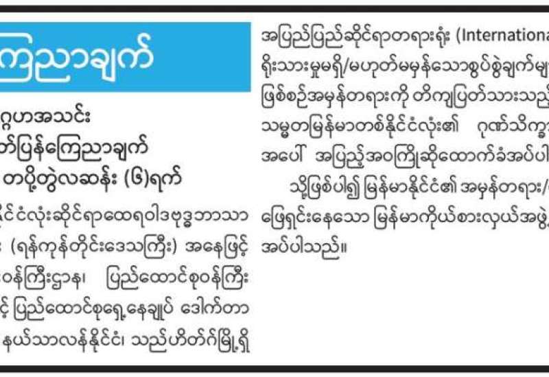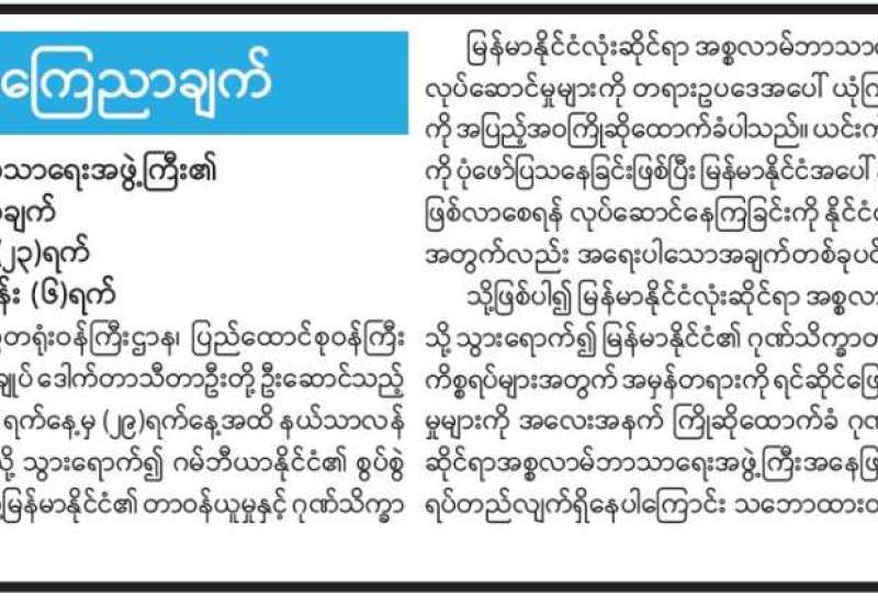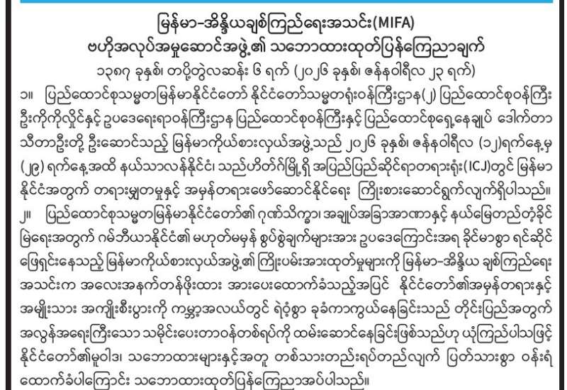မြန်မာ-အိန္ဒိယချစ်ကြည်ရေးအသင်း (MIFA) ဗဟိုအလုပ်အမှုဆောင်အဖွဲ့၏ သဘောထားထုတ်ပြန်ကြေညာချက်