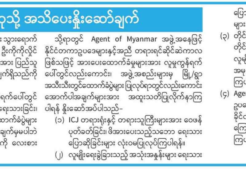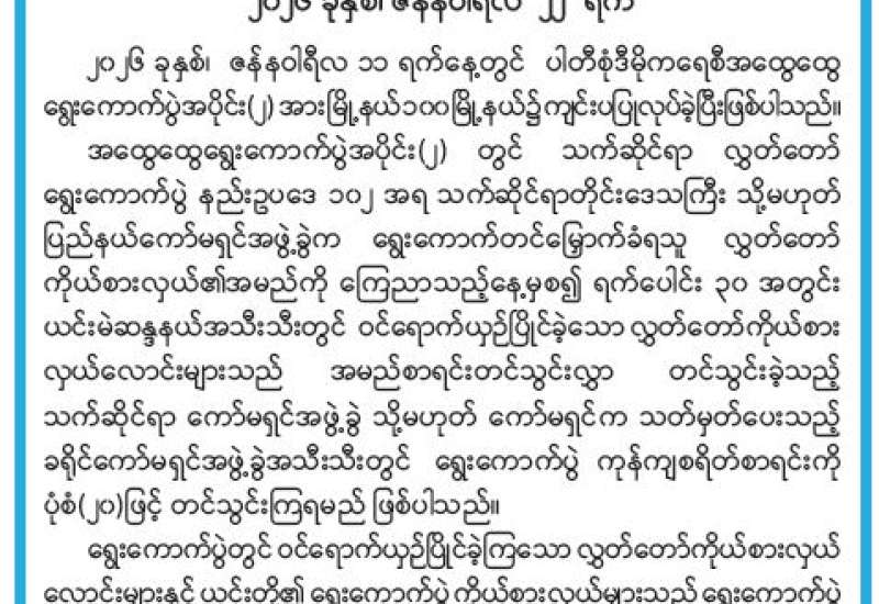 ပြည်ထောင်စုရွေးကောက်ပွဲကော်မရှင် အသိပေးနှိုးဆော်စာ