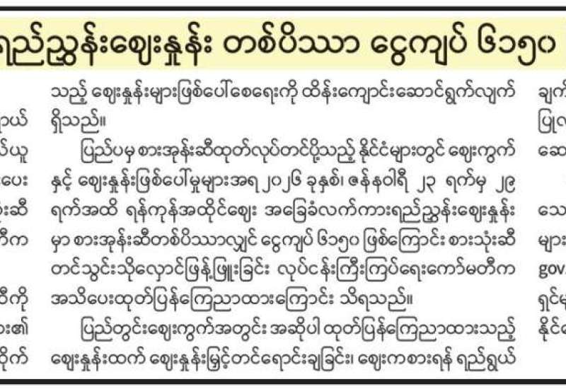 ရန်ကုန်မြို့နှင့် မန္တလေးမြို့အတွက် ရည်ညွှန်းလက်ကားဈေးနှုန်းများနှင့် ပြည်ထောင်စုနယ်မြေ နေပြည်တော်၊ တိုင်းဒေသကြီး/ပြည်နယ် မြို့တော်များအတွက် ရည်ညွှန်းလက်လီဈေးနှုန်းများ