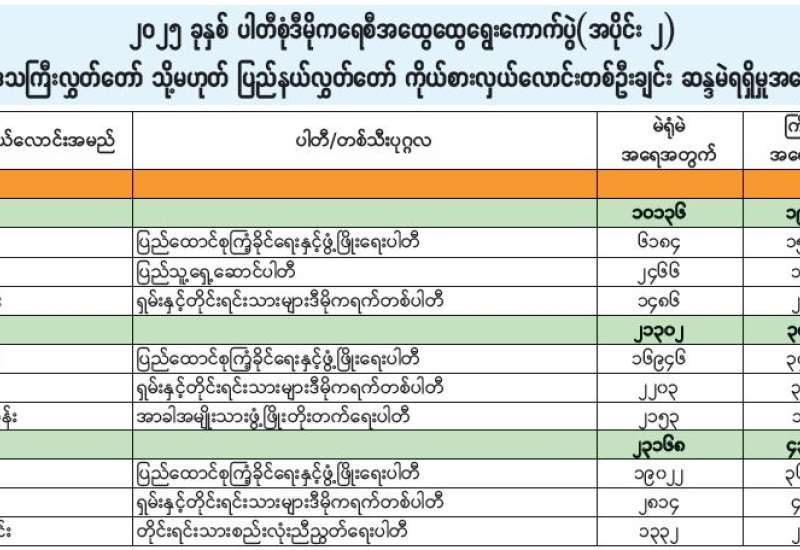၂၀၂၅ ခုနှစ် ပါတီစုံဒီမိုကရေစီအထွေထွေရွေးကောက်ပွဲ (အပိုင်း ၂) တိုင်းဒေသကြီးလွှတ်တော် သို့မဟုတ် ပြည်နယ်လွှတ်တော် ကိုယ်စားလှယ်လောင်းတစ်ဦးချင်း ဆန္ဒမဲရရှိမှု အခြေအနေ