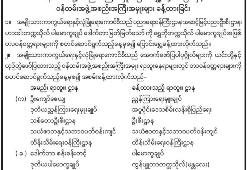 ၁။ နိုင်ငံရေးပါတီများအနေဖြင့် ဖွဲ့စည်းပုံအခြေခံဥပဒေ ပုဒ်မ ၄၀၇ (ဂ)၊ ပုဒ်မ ၄၀၈ နှင့် နိုင်ငံရေးပါတီများမှတ်ပုံတင်ခြင်းဥပဒေပုဒ်မ ၆(စ)ပါ ပြဋ္ဌာန်းချက်များအရ “ နိုင်ငံခြားတိုင်းပြည် တစ်ခုခု၏အစိုးရ သို့မဟုတ် ဘာသာရေးအဖွဲ့အစည်း သို့မဟုတ် အခြားအဖွဲ့အစည်းတစ်ခုခု သို့မဟုတ် ပုဂ္ဂိုလ်တစ်ဦးဦးထံမှ ငွေကြေး၊ ပစ္စည်း၊ အခြားအထောက်အပံ့ကို တိုက်ရိုက်ဖြစ်စေ၊ သွယ်ဝိုက်၍ဖြစ်စေ ရယူသုံးစွဲခြင်း သို့မဟုတ် ယင်းတို့၏ဩဇာခံယူခြင်း မပြုရေး " ကို စောင့်ထိန်း လိုက်နာရန်တာဝန်ရှိပြီး လိုက်နာရန်ပျက်ကွက်ပါက နိုင်ငံရေးပါတီအဖြစ်မှတ်ပုံတင်ထားခြင်းကို ပယ်ဖျက်ရမည်ဖြစ်ကြောင်း ပြည်ထောင်စုရွေးကောက်ပွဲကော်မရှင်၏ ၁၁-၈-၂၀၂၂ ရက်စွဲပါ စာအမှတ်၊ ၅/နငရ-ကြီးကြပ်(၄၉)/ကမရ ဖြင့် နိုင်ငံရေးပါတီအားလုံးသို့ အကြောင်းကြားခဲ့ပြီး ဖြစ်ပါသည်။