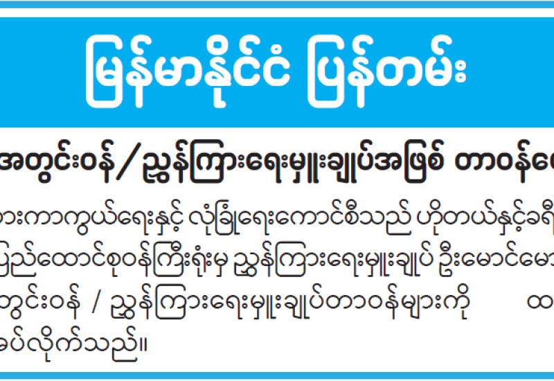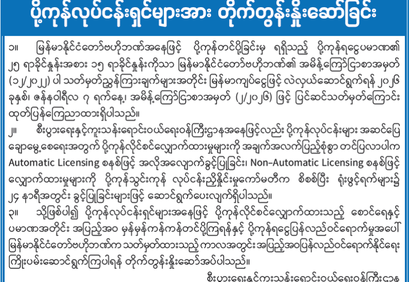ရန်ကုန်မြို့နှင့် မန္တလေးမြို့အတွက် ရည်ညွှန်းလက်ကားဈေးနှုန်းများနှင့် ပြည်ထောင်စုနယ်မြေ နေပြည်တော်၊ တိုင်းဒေသကြီး/ပြည်နယ် မြို့တော်များအတွက် ရည်ညွှန်းလက်လီဈေးနှုန်းများ