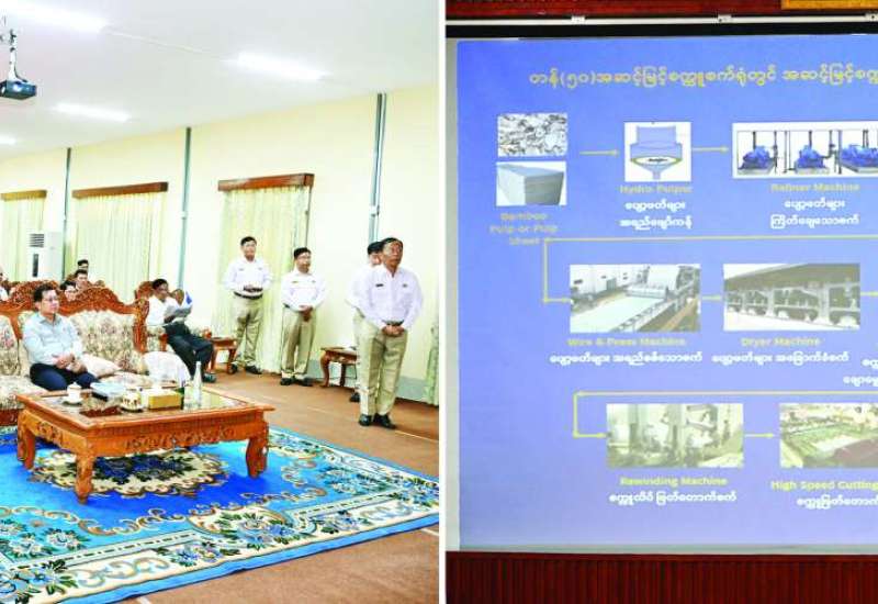နိုင်ငံတော်လုံခြုံရေးနှင့်အေးချမ်းသာယာရေးကော်မရှင်ဥက္ကဋ္ဌ တပ်မတော်ကာကွယ်ရေးဦးစီးချုပ် ဗိုလ်ချုပ်မှူးကြီး မင်းအောင်လှိုင်သည် ခရီးစဉ်တွင်လိုက်ပါလာသည့် အဖွဲ့ဝင်များလိုက်ပါ၍ ယနေ့ညနေပိုင်းတွင် မြန်မာစီးပွားရေးကော်ပိုရေးရှင်း စက္ကူစက်ရုံ (သာပေါင်း)သို့ သွားရောက်ကြည့်ရှုစစ်ဆေးသည်။