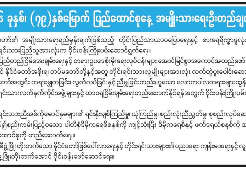 ၂ဝ၂၆ ခုနှစ်၊ (၇၉) နှစ်မြောက် ပြည်ထောင်စုနေ့ အမျိုးသားရေးဦးတည်ချက်များ