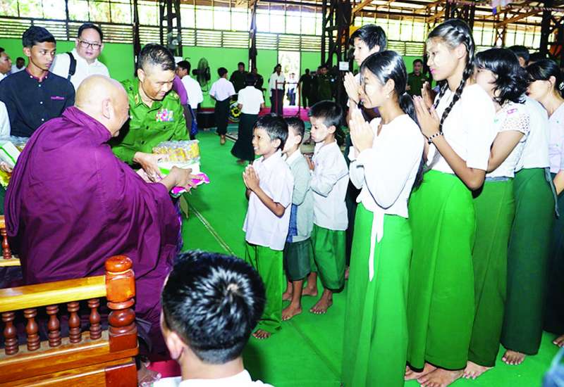 သဲဖြူ-မဟာမြိုင်-ချောင်းဖျားတောရ ဓမ္မရိပ်သာကြီး ၏ ဦးစီးပဓာနဆရာတော် ဒေါက်တာဘဒ္ဒန္တပညာ ဇောတကကမ်းရိုးတန်းဒေသ တိုင်းစစ်ဌာနချုပ်ရှိ ကျောင်းသား ကျောင်းသူများအား ကျောင်းဝတ်စုံနှင့် စာရေးကိရိယာများ ပေးအပ်လှူဒါန်းခြင်းကို ယနေ့နံနက်ပိုင်းတွင် တိုင်းစစ်ဌာနချုပ် တိုင်းရန်အောင်ခန်းမ၌ ပြုလုပ်ရာ သဲဖြူ-မဟာမြိုင်-ချောင်းဖျား တောရဓမ္မရိပ်သာကြီး၏ ဦးစီးပဓာနဆရာတော် ကြွရောက်တော်မူပြီးတိုင်းမှူး ဗိုလ်ချုပ် ကျော်ကျော်ဟန်နှင့် တာဝန်ရှိသူများ၊ အရာရှိ၊ စစ်သည်၊ မိသားစု ဝင်များနှင့် ကျောင်းသား ကျောင်းသူများ တက်ရောက်ကြသည်။