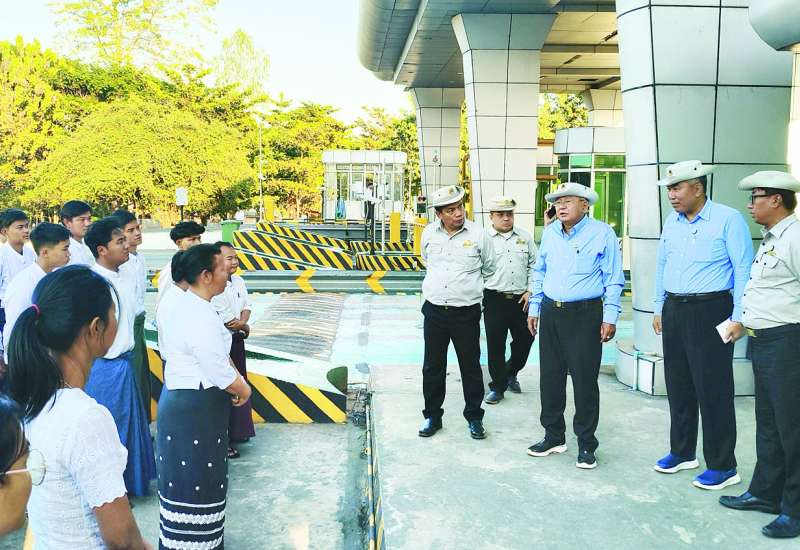 ဆောက်လုပ်ရေးဝန်ကြီးဌာန ဒုတိယဝန်ကြီး ဦးမျိုးမြင့်သည် ဌာနဆိုင်ရာတာဝန်ရှိသူများနှင့်အတူ ယနေ့နံနက်ပိုင်းတွင် ရန်ကုန်-မန္တလေးအမြန်လမ်းမကြီး (ရန်ကုန် - နေပြည်တော်လမ်းပိုင်း)ရှိ လမ်းအသုံးပြုခကောက်ခံနေသည့် တိုးလ်ဂိတ်များနှင့် မန္တလေးငလျင်ဒဏ်ကြောင့် ပျက်စီးသွားသော လမ်း၊ တံတားများ ပြုပြင်နေမှုကို ကြည့်ရှုစစ်ဆေးသည်။