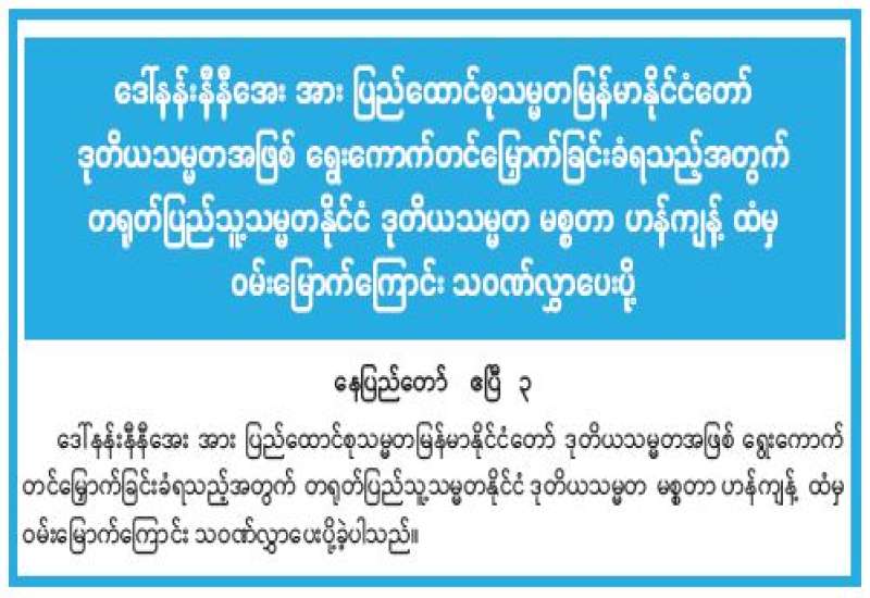 ဒေါ်နန်းနီနီအေး အား ပြည်ထောင်စုသမ္မတမြန်မာနိုင်ငံတော် ဒုတိယသမ္မတအဖြစ် ရွေးကောက်တင်မြှောက်ခြင်းခံရသည့်အတွက် တရုတ်ပြည်သူ့သမ္မတနိုင်ငံ ဒုတိယသမ္မတ မစ္စတာ ဟန်ကျန့် ထံမှ ဝမ်းမြောက်ကြောင်း သဝဏ်လွှာပေးပို့