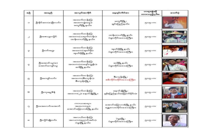 နိုင်ငံတော်၏အုပ်ချုပ်မှုယန္တရားပျက်ပြားစေရန် ရည်ရွယ်ချက်ဖြင့် နိုင်ငံ့ဝန်ထမ်း များနှင့် ပညာရေး ဝန်ထမ်း များအား CDM လှုပ်ရှားမှုများတွင် ပါဝင်လာစေရန်လှုံ့ဆော်ခြင်း၊ ၎င်းတို့ကိုယ်တိုင် CDM လှုပ်ရှား မှုများ တွင် ပါဝင် လုပ်ဆောင်ခြင်း၊ CDM လှုပ်ရှားမှုအပေါ် ထောက်ခံအားပေးခြင်း၊ CRPH မတရားအသင်းအား ထောက်ခံ အားပေး ခြင်းတို့ကို ဆောင်ရွက်လျက်ရှိသော အောက်ဖော်ပြပါ ပညာရေးဝန်ထမ်းများအား ရာဇသတ်ကြီး ဥပဒေပုဒ်မ ၅၀၅-က ဖြင့် အမှုဖွင့်အရေးယူဆောင်ရွက်ထားပြီးဖြစ်ပါသည်။