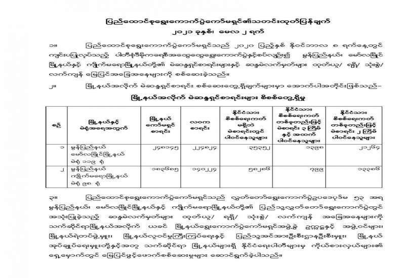 (၂၀၂၁ ခုနှစ်၊ မေလ (၃)ရက်နေ့ မွန်းလွဲ (၂:၀၀)နာရီအချိန် ထုတ်ပြန်ချက်)
