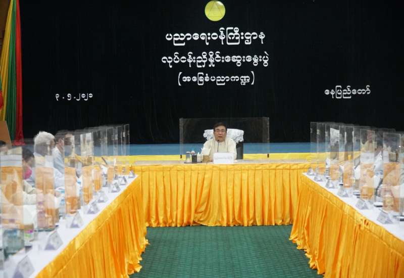 ရင်းနှီးမြှုပ်နှံမှုနှင့်သက်ဆိုင်သည့် စီးပွားရေးဆိုင်ရာ လိုင်စင်၊ ပါမစ်၊ ထောက်ခံ ချက်များ ပြန်လည်သုံးသပ်ခြင်း အစည်းအဝေးကို ယနေ့မွန်းလွဲပိုင်းက ရုံးအမှတ် (၁)၊ ရင်းနှီးမြှုပ်နှံမှုနှင့် နိုင်ငံခြား စီးပွားဆက်သွယ်ရေးဝန်ကြီးဌာန၊ ပြည်ထောင်စုဝန်ကြီးရုံးတွင် Video Conferencing ဖြင့် ကျင်းပသည်။