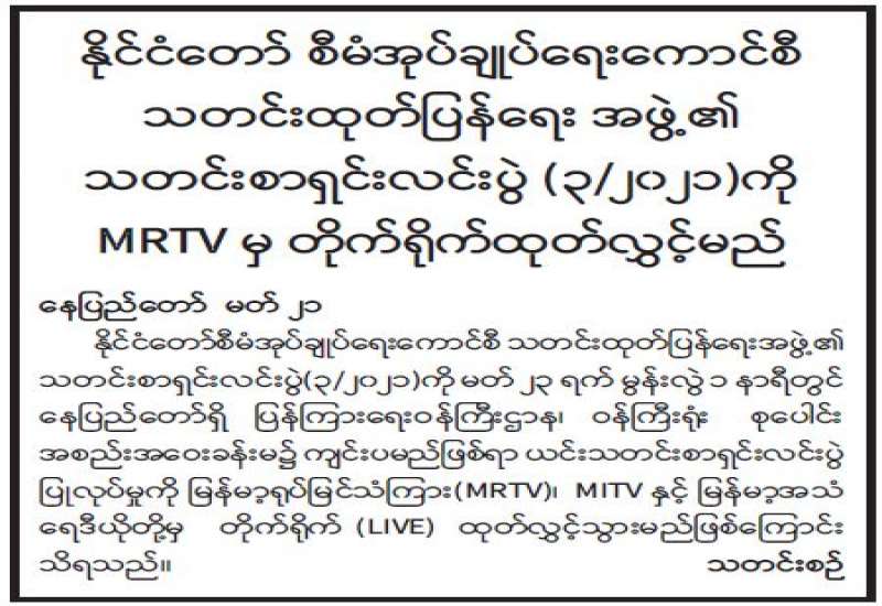 မန္တလေး တိုင်းဒေသကြီး အတွင်းရှိ မြို့နယ်များတွင် CDM လှုပ်ရှားမှုကို အခြေခံ၍ ဆူပူ အကြမ်းဖက်မှုကို လိုလားသော အဖွဲ့အစည်းများနှင့် လူအုပ်စုအချို့ က ရပ်ရွာအေးချမ်းသာယာရေး နှင့်တရားဥပဒေစိုးမိုးရေး ပျက်ပြားစေရန် ရည်ရွယ်ချက်ဖြင့် သွေးထိုးလှုံ့ဆော်မှုများ ဆောင်ရွက်လျက် ရှိသောကြောင့် ဒေသတွင်း ဆေးရုံများ၊ မီးရထားခရီးစဉ်များ၊ လေကြောင်းလိုင်းများ၊ မော်တော် ယာဉ်လိုင်းများ ရပ်ဆိုင်းခဲ့ရပြီး ဘဏ်များ၊ ဈေးများ ယာယီ ပိတ်ထားခဲ့ရသည်။