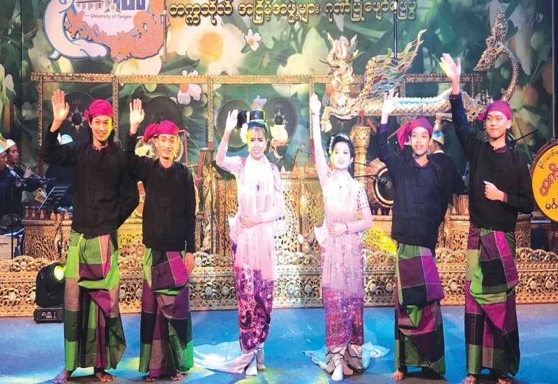 "ရန်ကုန်တက္ကသိုလ် ကံ့ကော်မြိုင်အငြိမ့် အနုပညာ အင်အားများနဲ့ ဖျော်ဖြေကန်တော့ ပန်ဆင် အလင်္ကာ တေးတစ်ပုဒ် ရွေးထုတ်ကာစီစဉ် ထောင့်ကိုးရာ နှစ်ဆယ်မှာ စတင်ပေါ်ခဲ့ပြီ... အလိမ္မာ စာမှာအရှိမို့ ပြောပါရစေ အတည် သမိုင်းကြောင်းအထောက်အထား အမြောက် အမြားရှိခဲ့ပြီ ထူးချွန်ထက်မြက်လှတဲ့ နိုင်ငံ့သားကောင်း များစွာပေါ်ခဲ့ပြီ . . ."