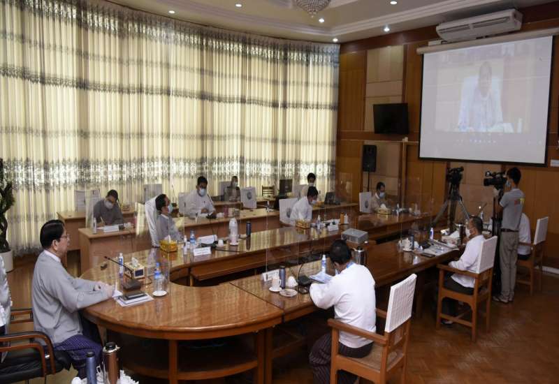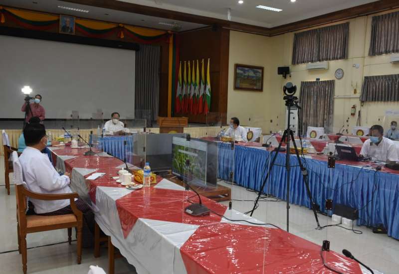 ကိုဗစ်-၁၉ ဖြစ်ပွားမှုနှင့် ရောဂါကာကွယ်၊ ထိန်းချုပ်၊ ကုသရေးလုပ်ငန်းများ ဆောင်ရွက် နေမှုအခြေ အနေများ အပတ်စဉ် တင်ပြ ဆွေးနွေးပွဲကို ယနေ့ နံနက်ပိုင်းတွင် ကျန်းမာရေးနှင့် အားကစားဝန်ကြီးဌာန အစည်းအဝေးခန်းမ၌ ကျင်းပသည်။