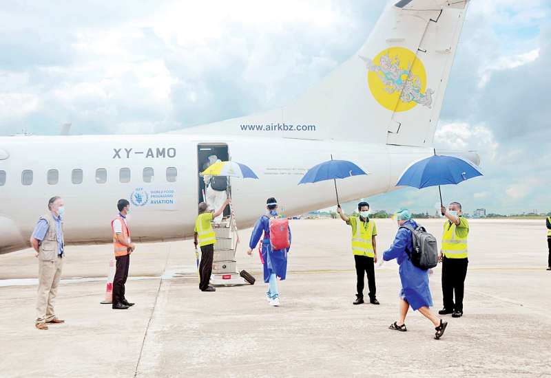 ကမ္ဘာ့စားနပ်ရိက္ခာအစီအစဉ် (WFP)၏ စီစဉ်မှုဖြင့် မြန်မာနိုင်ငံအတွင်း ကိုဗစ်-၁၉ ရောဂါ တုံ့ပြန်မှုနှင့် လူသားချင်းစာနာထောက်ထားမှု လုပ်ငန်းများကို ကူညီပံ့ပိုးနိုင်ရန် လူသားချင်း စာနာထောက်ထားမှုဆိုင်ရာ ပြည်တွင်း လေကြောင်းခရီးစဉ် (ပထမအကြိမ်) အဖြစ် ရန်ကုန်-စစ်တွေခရီးစဉ်ကို ယနေ့နံနက်ပိုင်းက စတင်ပြေးဆွဲသည်။