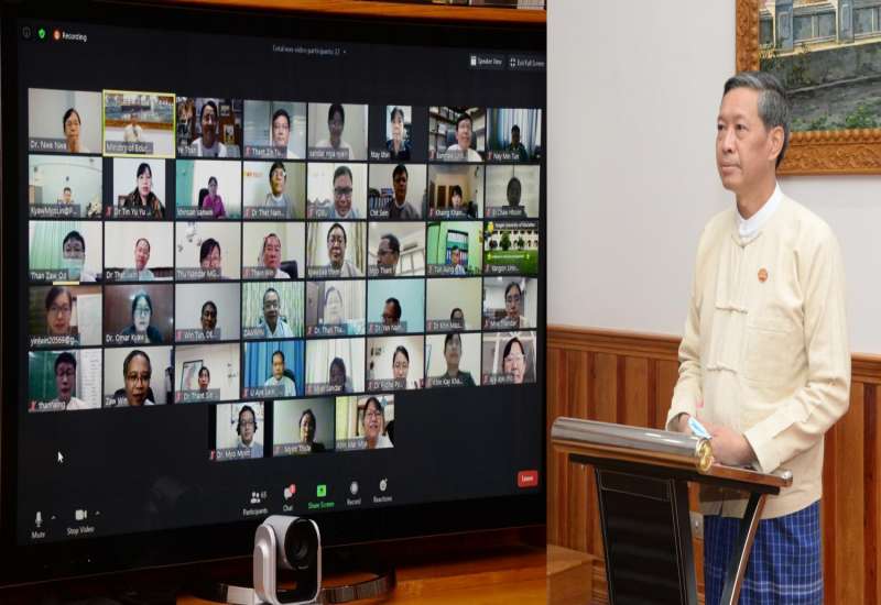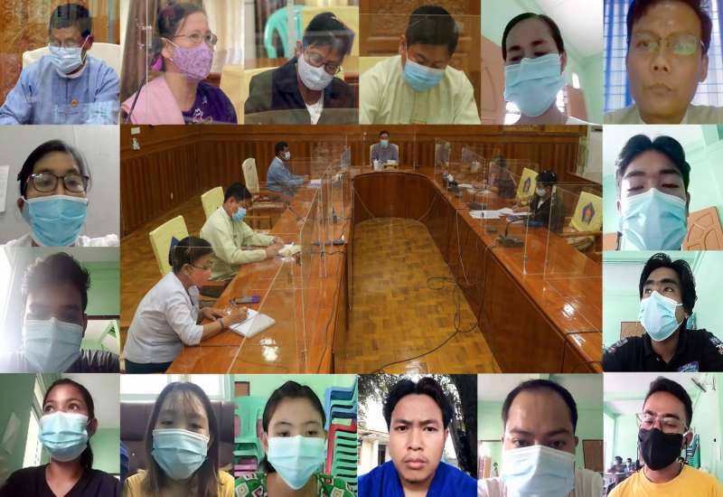 ရခိုင်ပြည်နယ်တွင်သာမက တိုင်းဒေသကြီး/ ပြည်နယ်အားလုံး၌ ကိုဗစ်-၁၉ ကာကွယ်ထိန်းချုပ်ရေး အရှိန်အဟုန်မြှင့်လုပ်ဆောင်ရန် ဗဟိုနှင့် တိုင်းဒေသကြီး/ ပြည်နယ်တာဝန်ရှိသူများ ဆွေးနွေးပွဲကို ယနေ့ နံနက် (၉) နာရီတွင် Videoconferencing စနစ်ဖြင့် နေပြည်တော်ရှိ  ကျန်းမာရေးနှင့်အားကစားဝန်ကြီးဌာန မှ ပြုလုပ်သည်။
