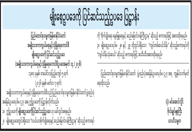 မြေဩဇာဥပဒေကို ပြင်ဆင်သည့်ဥပဒေ ပြဋ္ဌာန်း