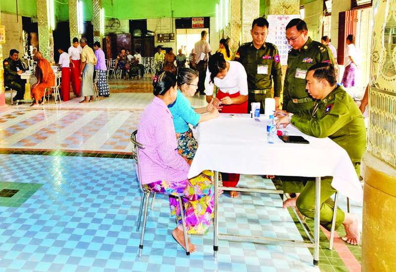 တပ်မတော်အနေဖြင့် ပြည်သူလူထု၏ ကျန်းမာရေးကဏ္ဍတိုးတက်မြင့်မားစေရန်အတွက် ကျန်းမာရေးစောင့်ရှောက်မှုလုပ်ငန်းများတွင် တစ်ဖက်တစ်လမ်းမှ ကူညီစောင့်ရှောက်မှုများ ဆောင်ရွက်ပေးလျက်ရှိရာ ယနေ့နံနက်ပိုင်းတွင် ရန်ကုန်တိုင်းစစ်ဌာနချုပ် နယ်လှည့်ဆေးကုသရေးအဖွဲ့က ရန်ကုန်တိုင်းဒေသကြီး မှော်ဘီမြို့နယ် ပတ်တန်းကျေးရွာနှင့် ပတ်ဝန်းကျင်ကျေးရွာများမှ သံဃာတော်များနှင့် ဒေသခံပြည်သူများအား အဆိုပါကျေးရွာရှိ တလိုင်းကုန်းကျောင်းတိုက်၌ အခြေပြု၍ ကျန်းမာရေးစောင့် ရှောက်မှုလုပ်ငန်းများ ဆောင်ရွက်ပေးသည်။