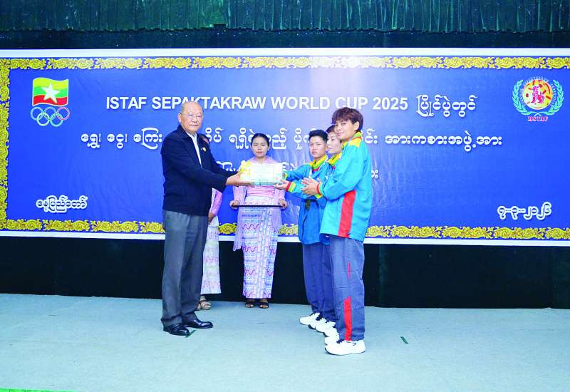 ၂၀၂၅ ခုနှစ် မတ် ၂၀ ရက်မှ ၂၅ ရက်အထိ အိန္ဒိယနိုင်ငံ၌ကျင်းပခဲ့သည့် ISTAF SEPAKTAKRAW WORLD CUP 2025 ပြိုင်ပွဲတွင် ရွှေ၊ ငွေ၊ ကြေး ဆုတံဆိပ်များရရှိခဲ့သည့် ပိုက်ကျော်ခြင်းအားကစားအဖွဲ့အား ဂုဏ်ပြုချီးမြှင့်ပွဲကို ယနေ့နံနက်ပိုင်းတွင် နေပြည်တော် အားကစားလေ့ကျင့်ရေးစခန်း (Gold Camp) ရှိ ဘက်စုံသုံးခန်းမ၌ ကျင်းပသည်။