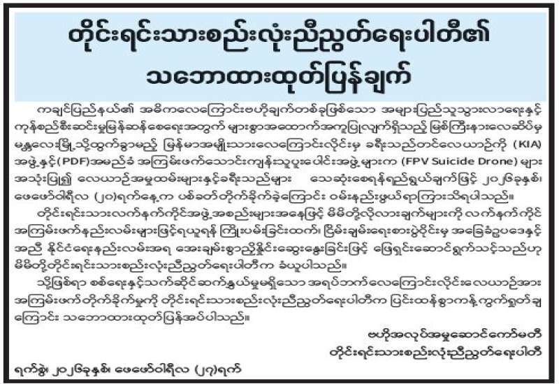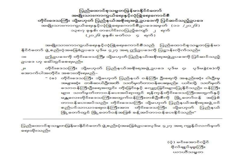စက်သုံးဆီ ခြိုးခြံချွေတာသုံးစွဲရေးအတွက် ပြည်သူသို့ အသိပေးကြေညာချက်အား ဖြည့်စွက်ထုတ်ပြန်ခြင်း